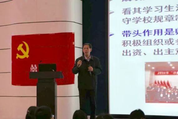 陈志英老师带着同学们重温入党誓词,指出学习生活中要看成绩但不惟成绩,倡导我们成为有带头作用的帅才。