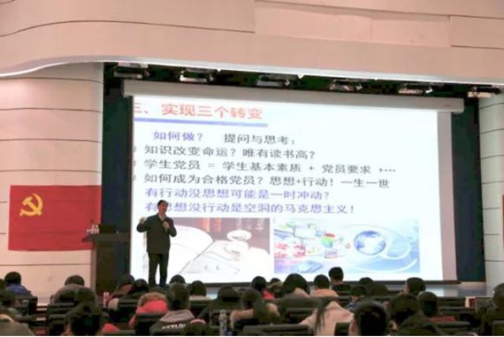 课堂最后,陈老师指出,作为大学生,我们要在学习、能力、道德情怀和身心素质等方面全面发展;要成为一名合格的共产党员,就要完成从被动到主动的转变、从荣誉到责任的转变、从崇拜明星到人生榜样的转变。