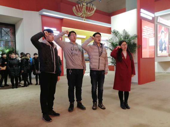 参观开始前,党支部书记郭谦同志带领支部新发展的18名预备党员面对党旗进行庄严宣誓,之后又带领着支部委员重温了入党誓词。在宣誓结束后,各个党小组进行了自由参观。