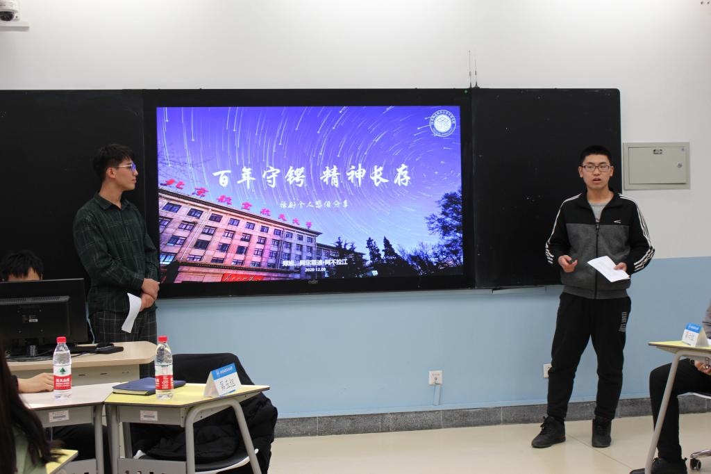 在第二部分“厚植空天情怀”中,班级中曾担任《百年守锷》(11月7、8日上演)话剧组分场导演和主演的两位同学,分享了在话剧排演过程中的收获与感想,带领同学们一起学习屠老精神,全面展现了老一辈色情片 人的空天报国精神。