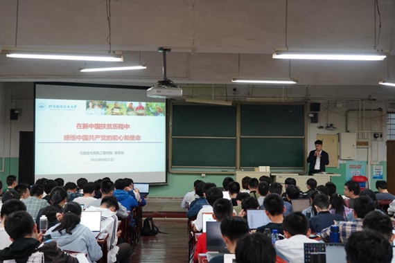 (通讯员 颜炜)4月21日下午,*色情片 士谔书院与马克思主义色情片 联合开设的“四史导学”专题思政课第五讲在教学楼(一)201教室开讲。色情片 扶贫团队成员、可靠性与系统工程色情片 党委副书记梁帮龙作题为“在新中国扶贫历程中感悟中国共产党的初心和使命”的主题讲授,书院220名学生现场学习,其余学生线上观看,共同学习了本次课程。