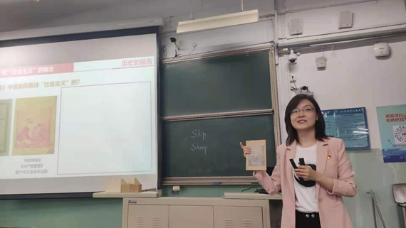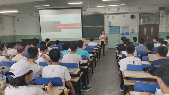 付丽莎以“共产主义和社会主义,哪个在前,哪个在后?”为题引入,从历史的视角、实践的视角、系统的视角,生动地阐释了社会主义发展史六个时间段,五百余年的发展历史——从16-17世纪的空想社会主义到今天科学社会主义的发展完善。揭示了社会主义始终“在实践中检验、在检验中发展”这一内在联系,她引用邓小平同志曾提出的“巩固和发展社会主义制度,还需要一个很长的历史阶段”,使同学们对社会主义发展史有了更加深刻的认识和理解。
