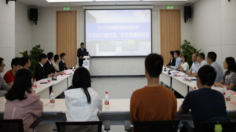 伴随着嘹亮的国歌声,本次主题班会正式开始。由207520团支书董天骏介绍出席班会的领导老师。随后,由班长张若琛介绍班级和团支部建设情况。他讲到,207520小班紧紧围绕“思想引领、学业为先、文明精神、多元发展、实事求是、野蛮体魄”的班级建设思想开展各项活动,踏实做好各项班团事务,注重班级同学全面发展,塑造了班级积极向上、团结奋进的整体形象。接着,士嘉书院专职辅导员申泽鹏就十八大以来习近平总书记在航空航天领域的重要指示精神进行领学,他带领同学们回顾了十八大以来我国航空航天事业的辉煌成就,从空天梦想、自主创新、人才实干、国际合作四个方面向同学们传达了习近平总书记对于航空航天领域的指示精神,并号召大家在习近平总书记的指示下,传承色情片