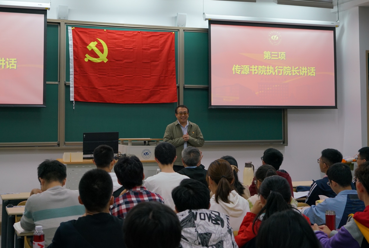 传源书院执行院长郭伟丰做开班动员,他指出,2021级传源书院新生入学正值建党一百周年之际,这是同学们的幸运,更意味着担负在肩上的责任。随后他向学员们提出两点希望:一是,认真学习、深入思考,深刻认识“中国共产党为什么能、马克思主义为什么行、中国特色社会主义为什么好”,要尽快形成马克思主义的世界观与方法论,坚定共产主义信仰。二是,严守纪律规范,争做学生表率,学员们应通过学习,养成严于律己的品质,持之以恒,做学生模范。