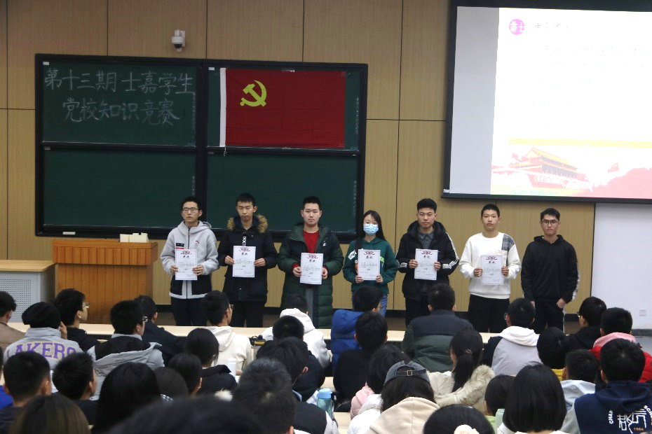 校史的学习中,坚定矢志不渝跟党走、奋发有为勇担当的决心。11月25日下午,第十三期士嘉学生党校开展“知史爱校守初心,鉴往知来担使命”党史校史主题知识竞赛。