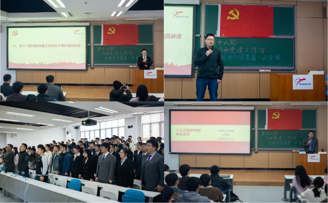 讲师华思衡、冯如书院兼职辅导员汪秦毅,第十七期党建工作坊优秀学员代表、优秀学生干部代表和第十八期冯如党建工作坊全体学员及干事代表共同参加了本次活动。