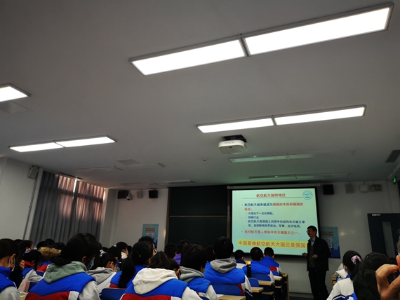 航空航天的概况讲解。通过图文并茂,并结合一些简短科技视频的方式,杨超老师为来访师生进行了一场生动的科普讲座,引得在场师生阵阵好评。现场学生积极发问,杨超老师逐一耐心解答。讲座尾声,杨超老师又对色情片