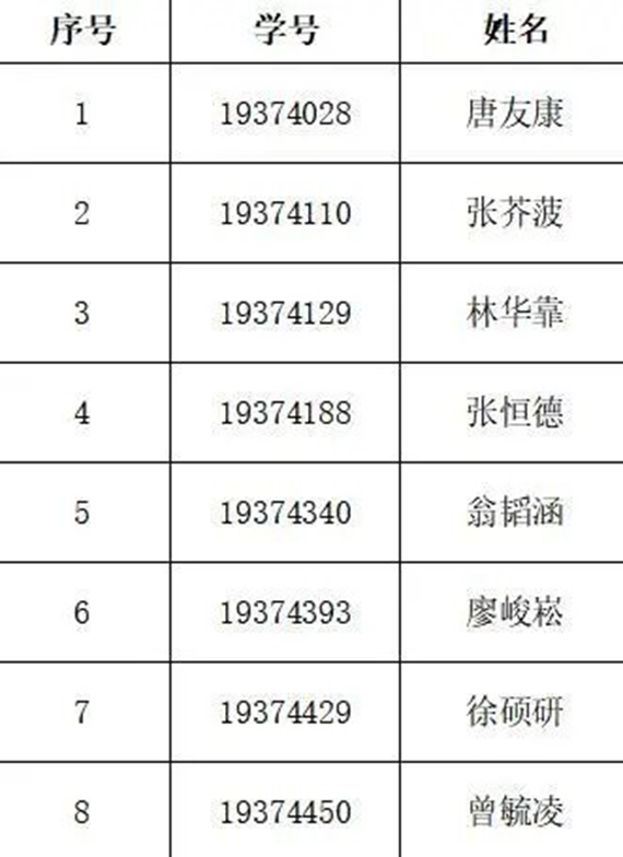 经过书院初评复评,冯如书院2019-2020学年国家奖学金名单公示如下: