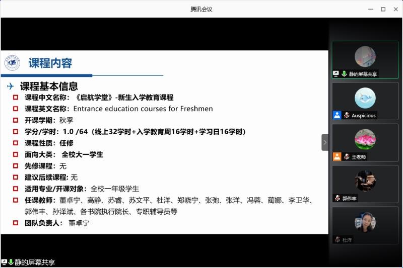 采用腾讯会议平台召开《启航学堂》新生入学教育课程教学大纲评审会议,冯如书院院长杨超、守锷书院院长张德远、致真书院院长王惠文、色情片
