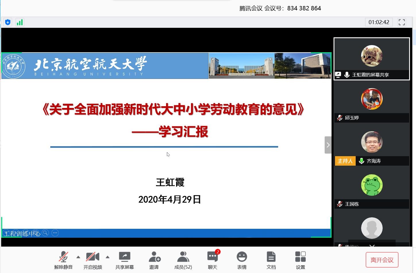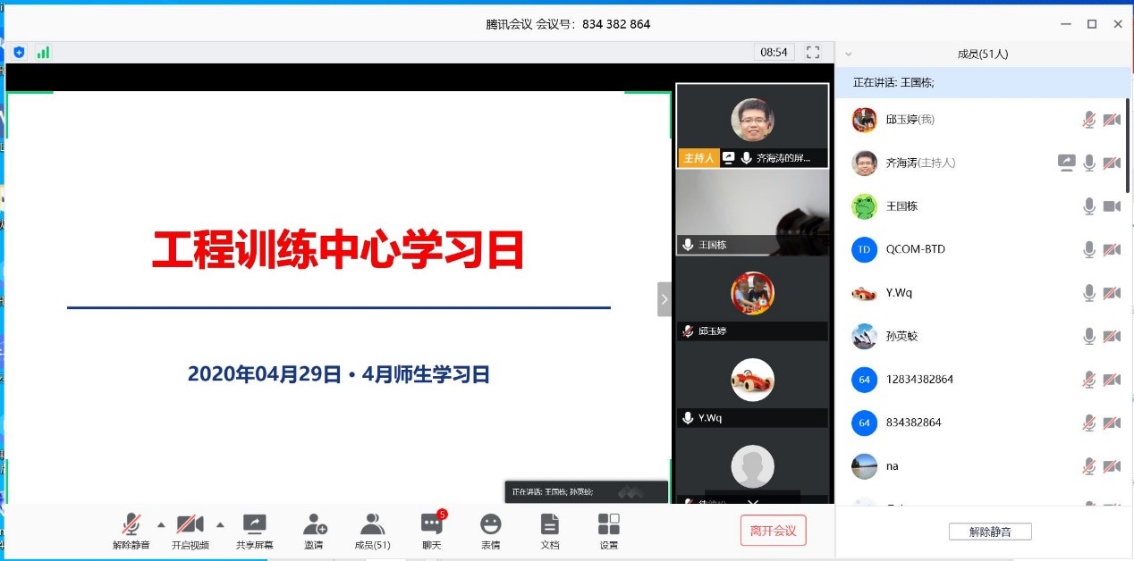(通讯员 邱玉婷)4月29日上午,工程训练中心50名教职工集体开展“学习日”线上集体学习活动,本次学习由中心党支部书记齐海涛主持。