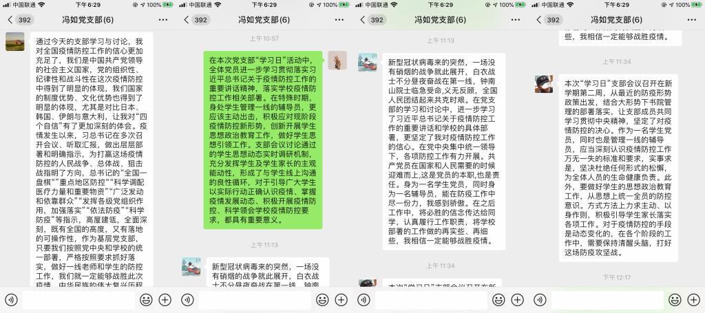 党委关于疫情防控工作的相关要求,对照方案部署书院近期重点工作,力求从严从实落实到位,增强了打赢疫情防控阻击战的信心和决心。各位党员在支部讨论平台积极发表学习感想,分享心得体会。