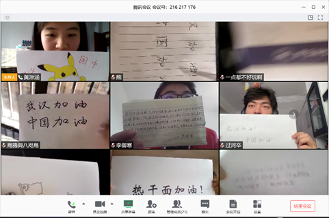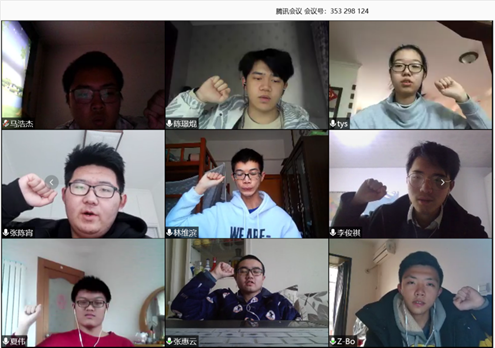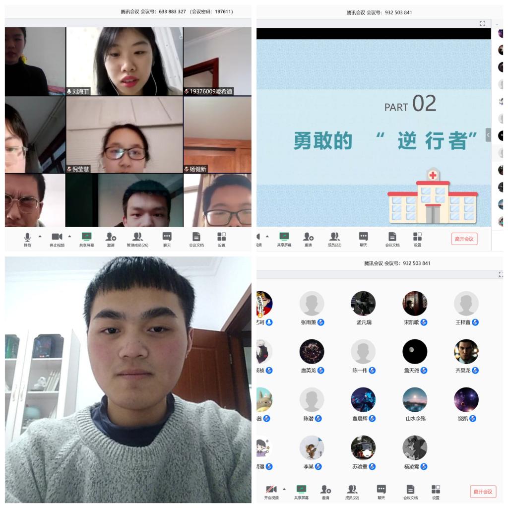 在本次主题团日活动中,三大班利用腾讯会议app开展了线上讨论,并邀请辅导员一同参与。在班会上,首先由各小班团支书向大家介绍了本次疫情的最新形势,随后在生活委员和学习委员讲解下,同学们了解了本学期的学业安排和居家防疫指南,并由推荐的代表分享疫情防控期间发生在身边的好人好事,最后以视频形式展示了同学们为武汉加油的作品,提振了武汉必胜中国必胜的信心和决心。