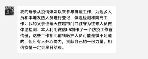 虽然疫情在前,二大班的同学们仍积极通过线上交流的形式开展了各项主题团日相关活动。从同学对疫情自由交流看法,班委的防疫分享与对实时疫情的详细介绍,二大班同学表现出对疫情的高度重视和严加防控。本次主题团日活动也完美开展,将疫情防控的重要性传递给每一名学生,展现出二大班同学对疫情防控工作的高度执行,是对每一位为疫情不懈奋斗的前线人员的致敬。榜样的力量引领我们前行,向前线工作人员致敬的同时,作为大学生的我们,更要严格居家隔离,坚守底线,不传谣不信谣不造谣,共同抗击疫情。