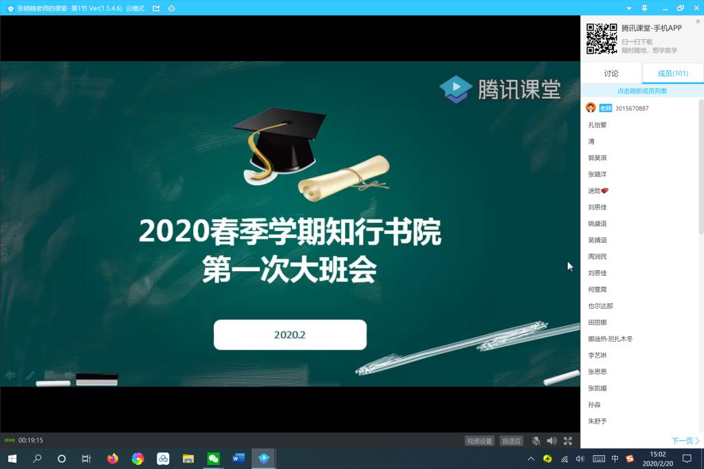 的第一次大班会。疫情当前,为配合后期开学课程安排,此次班会书院采用了线上网络直播的方式,以试运行线上课堂效果,“停课不停学”,新学期的各项工作正有条不紊地进行着。