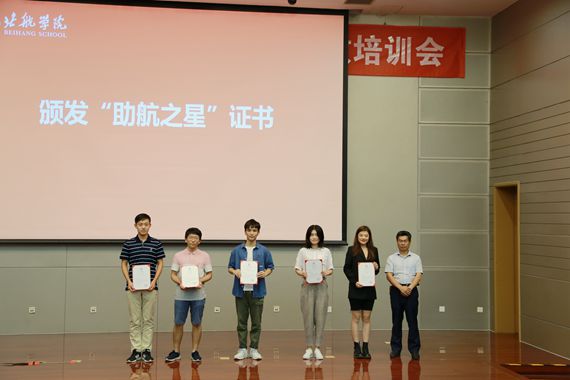 以实事求是、宁缺毋滥为原则,评选出第三届“助航之星”5名,他们是牛宇迪、李欣欣、陆俊峰、赵涵、谭龙。曹庆华常务副院长为“助航之星”获奖者颁发荣誉证书。