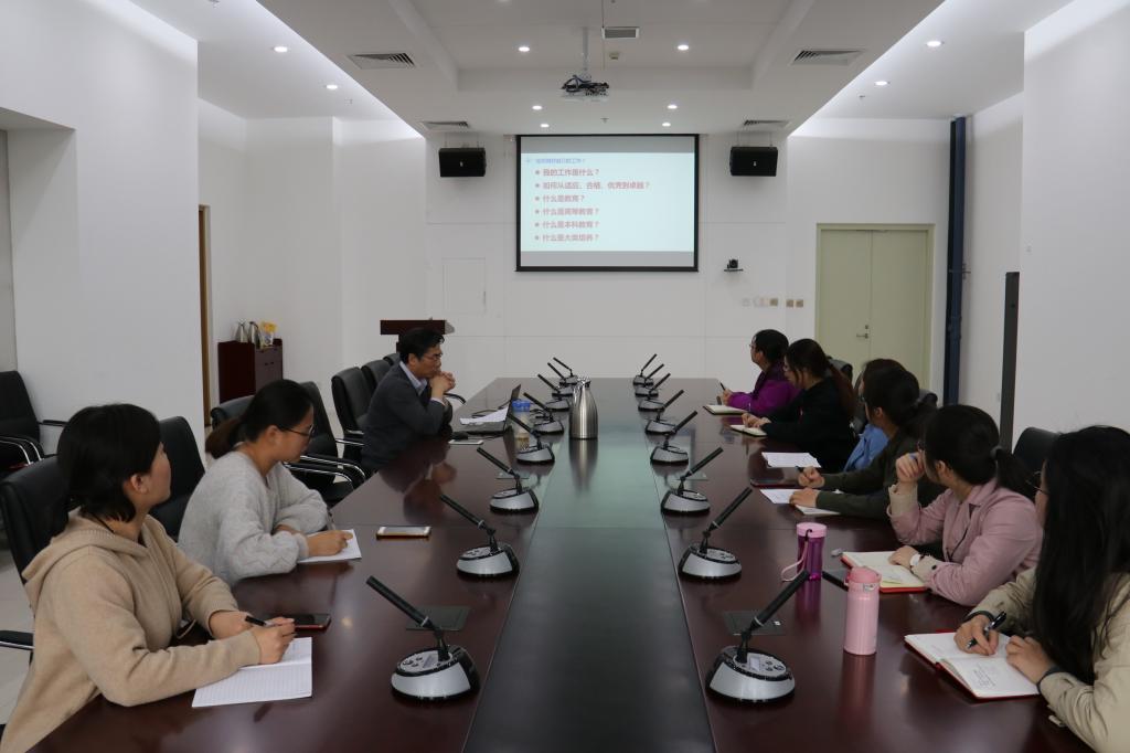 交流中,曹院长首先提出了六个问题:我的工作是什么?对待工作如何从适应、合格、优秀到卓越?什么是教育?什么是高等教育?什么是本科教育以及什么是大类培养。与会人员就以上六大问题进行了深入思考,充分发表了自己的观点并简述了入职以来的工作概况,对工作内容的思考以及对色情片