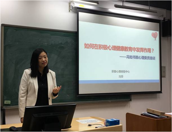 积极心理体验中心冯蓉老师受邀来到沙河校区,围绕心理委员职责与团体辅导技能训练,为同学们带来了一场精彩的培训。来自冯如书院2017级、2018级的二十多位心理委员接受了本次专业培。