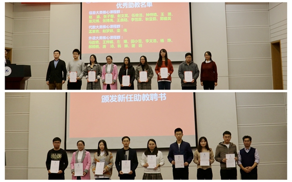 也将考虑在研究生推免、直博等方面对表现优秀的助教给予更多的政策支持。最后,他对获得优秀助教的同学们表示祝贺,同时也希望新聘助教向榜样学习。