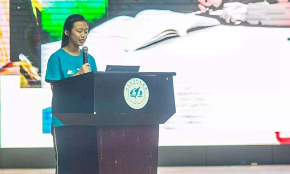 大会第二项,闵敏院长了介绍书院文化和内涵,归纳并总结了如何享受书院的学习生活。闵院长赠言给全体18级同学“致真少年,格物致知,求真笃实,不负韶华。希望全体18级同学能充实的度过大学生活的每一天。”
