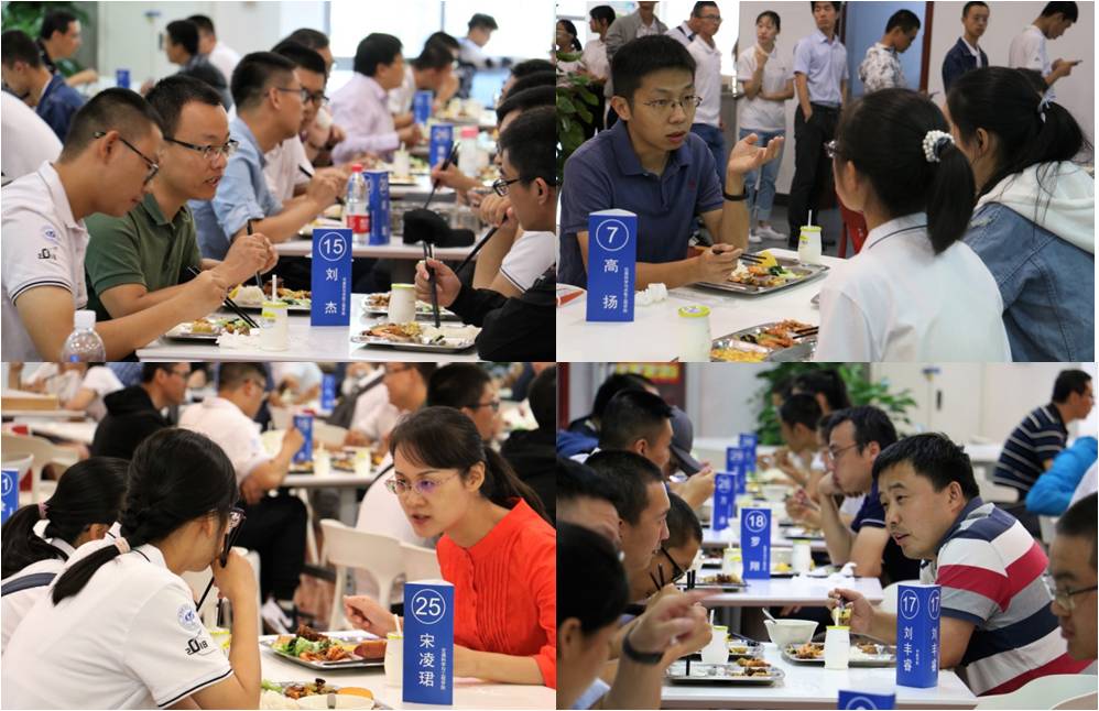 随后,师生代表共同前往沙河校区食堂,开展书院第二届师生共餐活动。师生共餐是冯如书院传统的导学活动项目,旨在通过创造温馨的师生交流环境,进一步拉近导师与学生的举例,促进师生平等交流,着力解决大师不在学生身边的问题。“未来专业怎么选?大学课程难不难?想做科技实践该找谁?”面对新生同学们提出的问题,导师们在宽松、愉快的氛围中给同学们一一解答,与同学们共同交流探讨。师生共餐,让学生感受到了老师的和蔼可亲,也让导师们明确了学生的需求,为书院2018级导师工作的顺利开展奠定了良好基础。