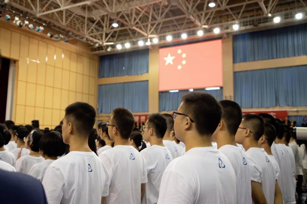 在大会的最后,所有人起立,齐声高唱校歌《仰望星空》。“我仰望星空,它是那样壮丽而光辉;那永恒的炽热,让我心中燃起希望的烈焰、响起春雷。”大会在激情洋溢的歌声中落下帷幕。