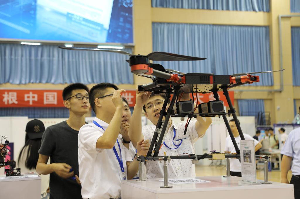 布置了科技作品展示区,无人机、赛车、生物医学产品等科技作品吸引大一同学驻足观看;体育馆两侧大屏幕上轮流播放各专业色情片