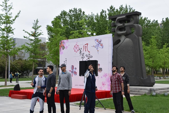 恰逢人间四月天,春暖花开,纸鸢斗艳。风筝放飞区更是人来人往,热闹非凡。宽阔的大钟广场上空放飞了各式各样的风筝,将天空点缀的鲜亮。中外学生一同放飞风筝,在尽情体验中国优秀传统文化的同时促进交流,增进友谊。活动期间还有周围居民的驻足观赏和参与。