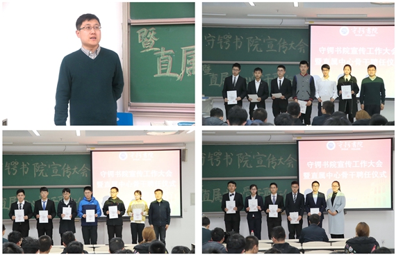 (通讯员 饶琦昱 葛文赫 蒋茁)3月21日晚20:30,守锷书院于J3-103召开守锷书院宣传工作大会暨直属中心骨干聘任仪式。守锷书院执行院长、专职辅导员、事务助理,书院团委宣传部、学生会宣传部、守锷党建工作坊、社团负责人,各大班长、团支书、宣传委员,小班宣传委员,新闻宣传中心、学业发展中心、学生事务中心共百余人出席会议。会议由守锷书院新闻宣传中心主任蒋茁主持。