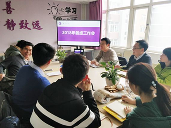 会议首先由书院各工作人员汇报2018年的工作设想。专职辅导员邵英华从书院建设经验总结与思考、构建书院建设发展生态圈、精准学生学业与发展辅导、未来书院建设与发展展望四个方面谈及自己对新一年工作的期待和计划;专职辅导员冀赵杰从深入学习十九大精神,党建工作新突破、聚焦通识教育,博雅课程新突破、精准服务成长成才,育人机制新突破这三个方面确定新一年的工作方向;学业助理谭晓颂、事务助理陈贝以及三位大班的半脱产辅导员分别从自身的工作内容出发,规划了新一年的工作计划。