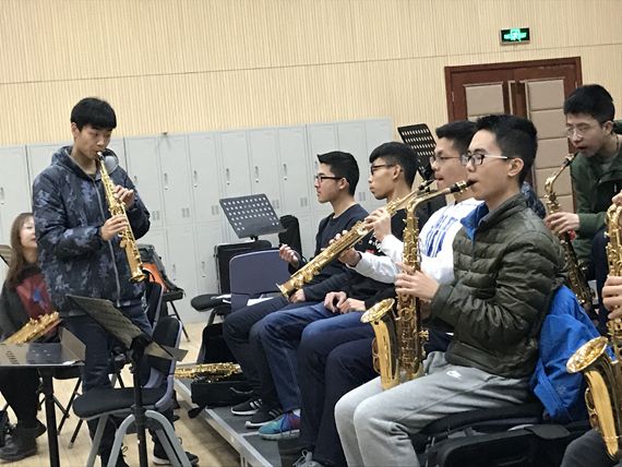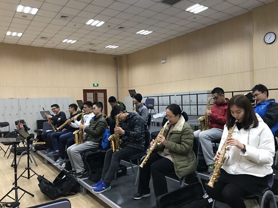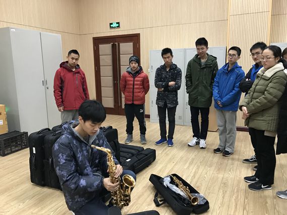 学生行进管乐团团长白雪飞的带领下一起领略了萨克斯这一近代乐器的魅力。