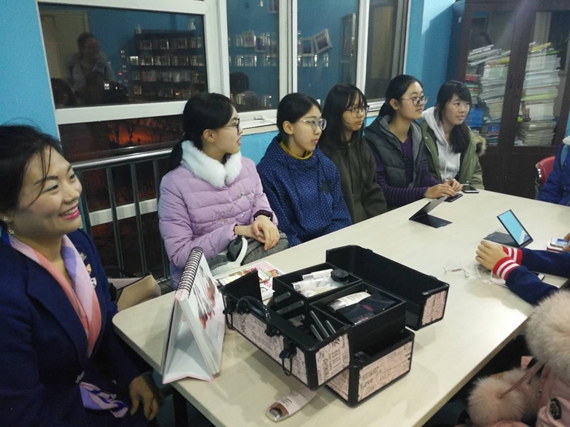 沙河校区3公寓守锷书院社区空间,以“妆点人生——开启潜在的美丽”为主题,为守锷女孩们讲解化妆的技巧。