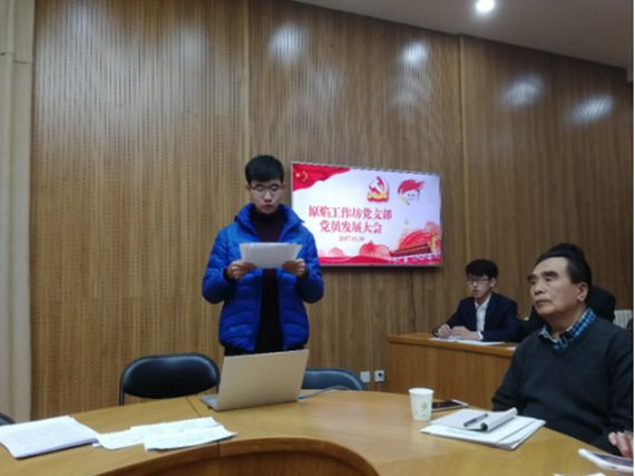 会议在国际歌中拉开帷幕,按照大会流程,由申请入党人逐一进行入党志愿书的宣读。申请入党的同学都真切地表达了对中国共产党的向往,对党的忠诚,表示坚定不移跟党走,为党的工作付出自己的力量,为共产主义事业奋斗终身的信念。十八位同志都积极地向党组织介绍了自己的学习教育经历和思想发展情况,表达了对加入中国共产党的强烈愿望。在每位积极分子发言之后,各对应的两名入党介绍人对其进行学习、工作、实践活动等方面进行全面评价,发表针对被发展人是否具备成为预备党员条件的意见。