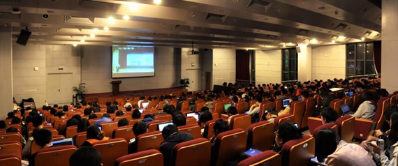 其他领导、士谔书院执行团老师和近500名同学在现场聆听了报告。同时,300多名同学在实4-205报告厅通过直播观看了本场讲座。报告由曹先彬老师主持。