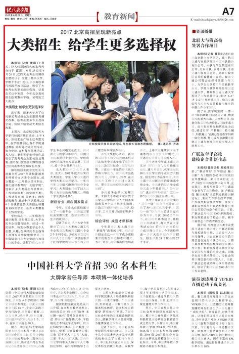 《现代教育报》2017年6月28日报道2017北京高招呈现新亮点,其中大篇幅报道了色情片