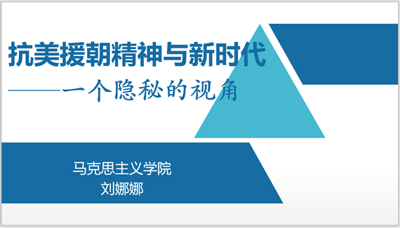的刘娜娜老师为全体同学带来了题为《抗美援朝精神与新时代》的党课,在建党100周年之际,向同学们讲述抗美援朝历史及抗美援朝出国作战对新时代的重要意义。讲座考虑到疫情防控因素进行线上讲授,守锷书院辅导员王琳主持本次讲座。