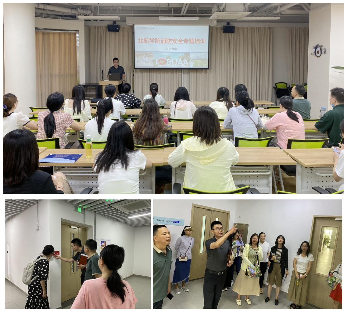 党政办公室主任马炳涛主讲,主要从消防安全知识、火灾形势及预防、电动车安全使用等贴近高校实际内容,并结合日常生活和工作中的典型案例,为与会人员上了一堂生动的警示教育课。培训结束后,与会人员还开展了应急疏散演练。马炳涛实地介绍了楼宇逃生出口指示标志、消防器材及报警装置相关常识,并模拟接到“紧急疏散”指令后,大家迅速有序地从各个紧急出口撤出楼宇。