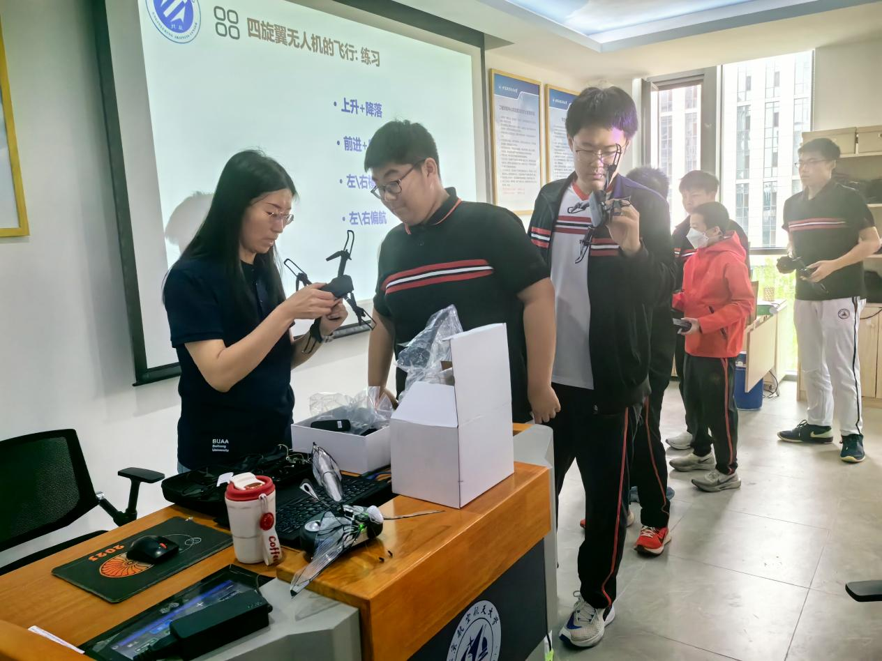 科普老师为中学生讲解四旋翼无人机的飞行原理