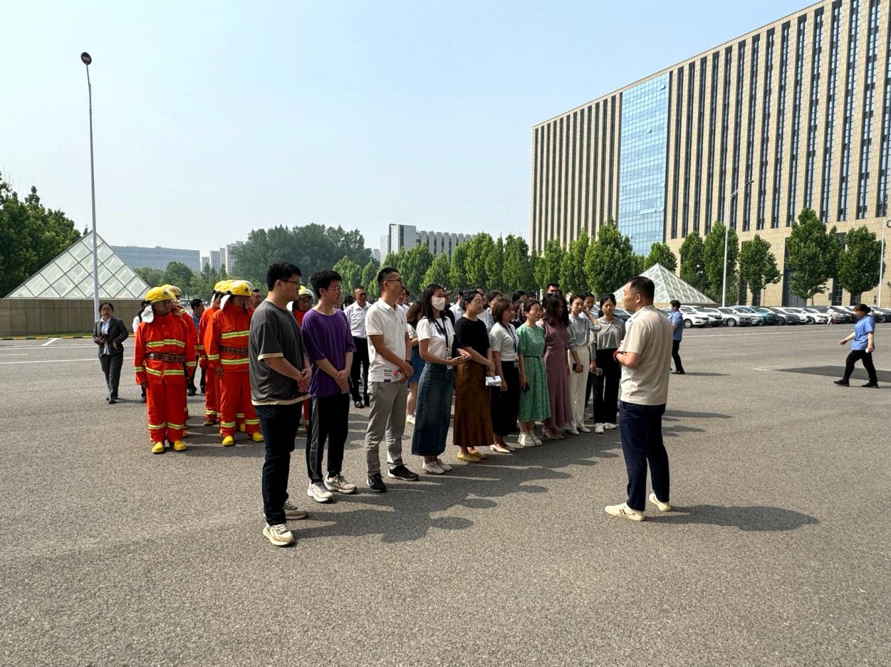 本次演练模拟了沙河主楼B座二层公共区域起火的紧急情况,中控室在接到报警后迅速启动A、B座消防广播,启动应急响应机制。在专业人员的悉心指导下,全体师生保持冷静、有序,迅速通过逃生通道步行至最近的安全出口,疏散至主楼A、B座南侧安全区域。