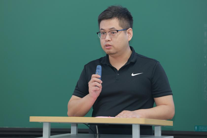 上海青瞳视觉科技有限公司副总裁胡世豪致辞。他表示全国3D大赛-虚仿专项赛首个赛区今日启动,聚焦无人机动作捕捉穿越赛,旨在传授前沿技术知识,培养技术创新能力,为国家培养技术型、创新型、应用型人才。