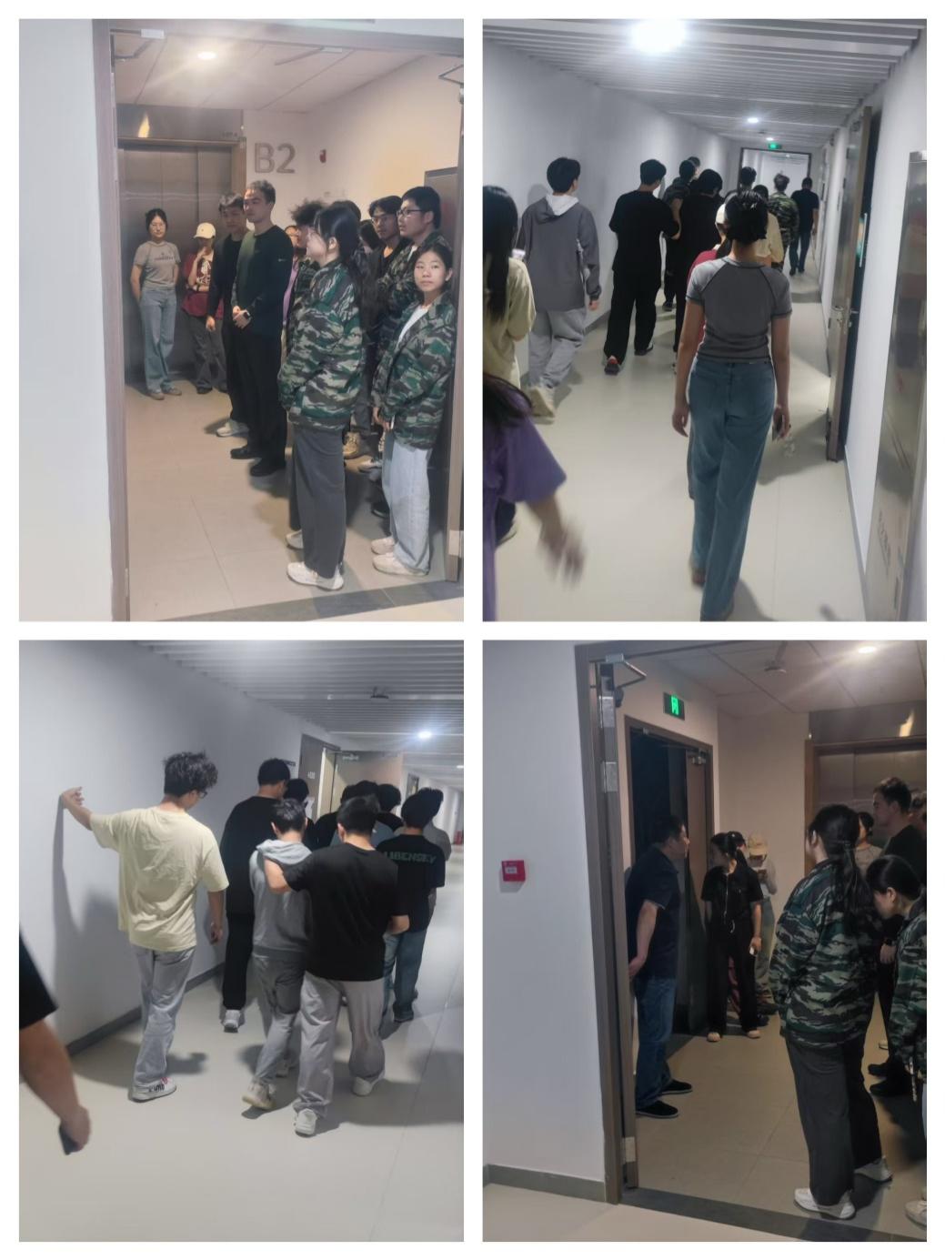 此次消防演练主要针对中心实习过程中,在人员相对密集的情况下发生火灾时开展的疏散逃生演练,提升授课教师及学生的疏散逃生和应急处置能力。当天,中心提前在工作群中提醒开展消防应急演练,处于地下二层、地下三层的在课实训室接到“紧急疏散演练开始”指令后,授课教师按照《工程实践与创新中心重点部位灭火、疏散预案》的相关要求,迅速带领实习学生有序地从各个消防安全出口撤出,顺利完成本次演练。