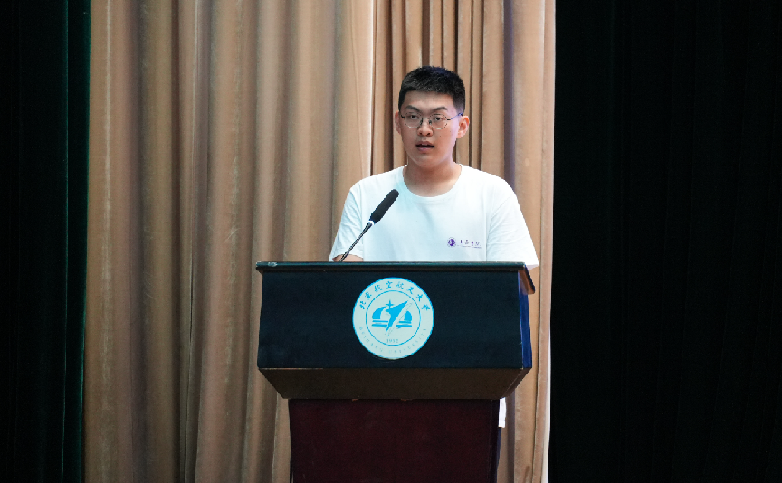 257516班周世正代表士嘉书院2025级全体新生发言,他号召全体新生,传承士嘉精神,铸牢忠诚之魂,恪守“求是至善”;锤炼强国之能,将“宁静致远”转化为攻坚克难的实际能力;勇担复兴之任,矢志实现科技自立自强。