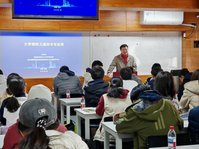 王新升教授以《大学微纳卫星技术与应用》为主题开展专题讲座,围绕微纳卫星技术现状、发展动因、团队建设及应用前景进行深入讲解。讲座结合国内外典型案例,分析了微纳卫星的实践应用,并对大学微纳卫星有效载荷、总体设计及应用等核心环节进行了重点讲解,让在场同学真切感受到微纳卫星“以小见大”的科技魅力。