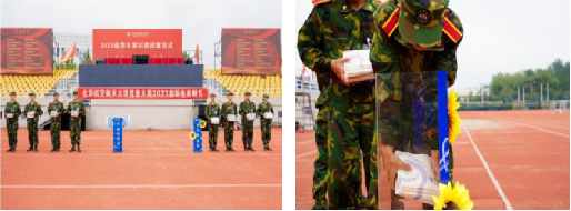 的领导和2023级新生代表为军训指导员赠送纪念品。薄礼厚意,全体新生向各位指导员的关心照顾表达了感激,更表达了对来自各专业色情片