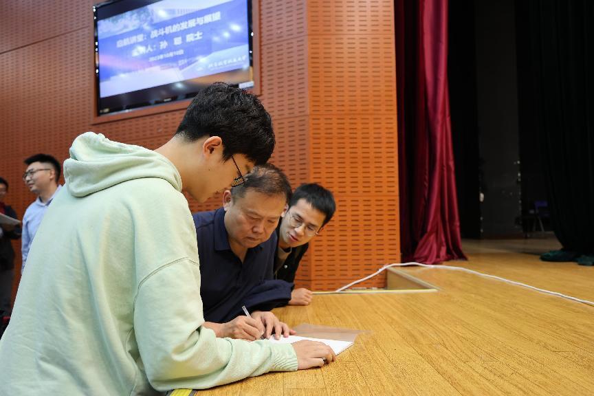 报告结束后,孙聪院士与多位同学进行了互动交流。同学们纷纷表示,通过这次报告,不仅对战斗机技术的发展历程和未来趋势有了更加深入系统的认识,更激发了勤奋学习、努力实践、空天报国的动力。