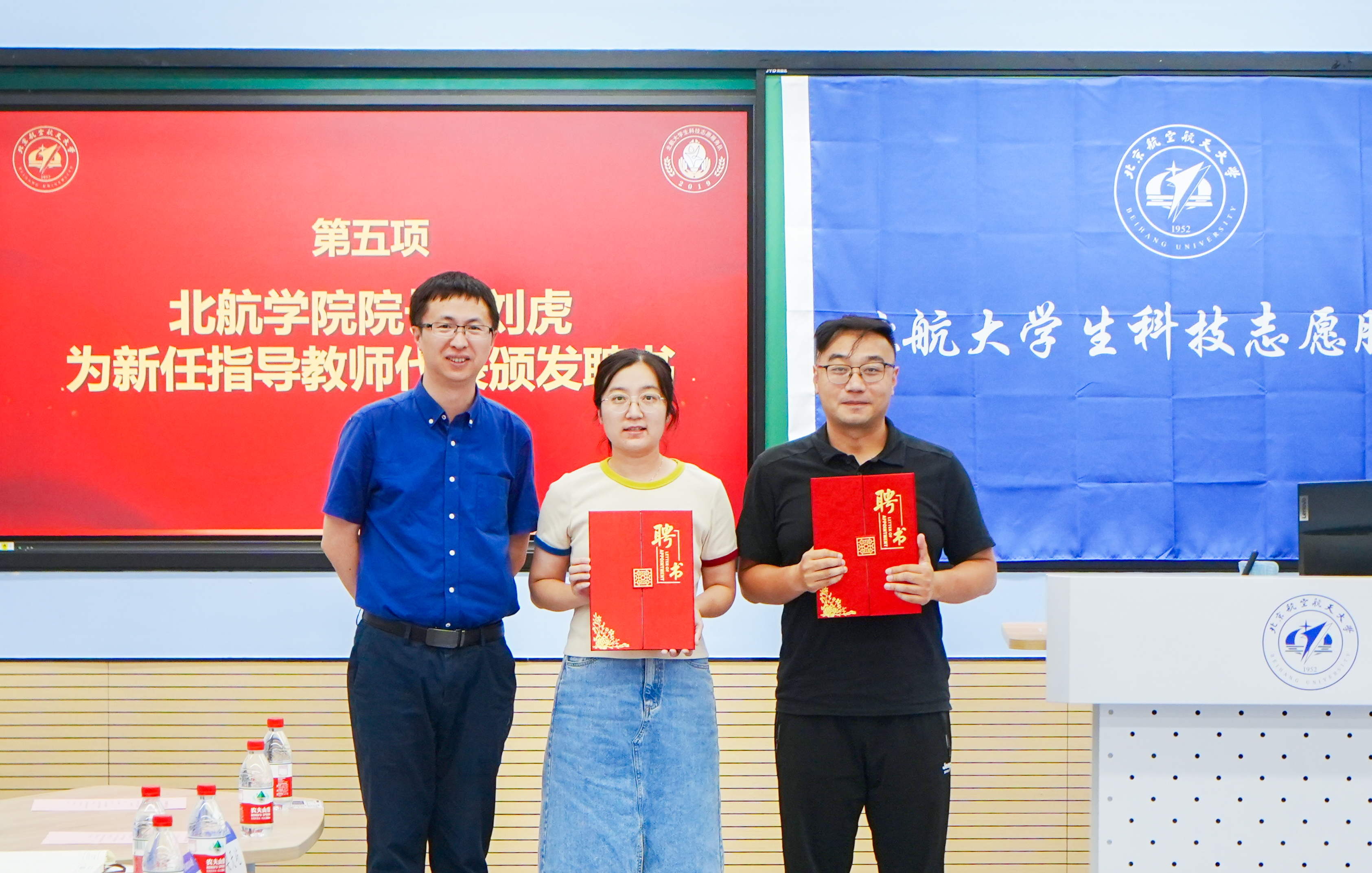 院长刘虎为志愿服务队新任指导教师代表颁发聘书。今年,指导教师团队对志愿服务队课程《大学生社会实践:面向乡村中小学生的科创教育》的授课内容进行再次迭代,童咏昕、王耀坤、梁天屹、毋艺臻、王佳发、伊志豪等6位老师加入了理论及实践环节授课,形成了教学一线、学工一线、乡村振兴一线有机融合的指导教师团队。