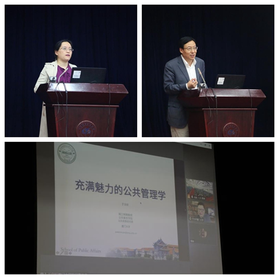 行政管理系系主任涂晓芳副教授从学习内容、培养优势以及未来发展三个部分,阐释了行政管理专业专业化、个性化的培养优势。任建明教授从公共管理的长期竞争力及重要性两方面进行补充介绍,希望“真正有志于影响并决定国家未来命运的年轻人来到行政管理专业”。厦门大学公共事务色情片 特聘教授于文轩教授通过腾讯会议远程助力,给予同学们专业选择和行政管理专业学习的指导建议。
