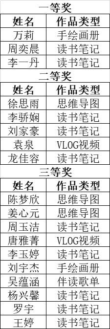 本次活动包括组建读书小组、线下导读会、线上交流、成果提交评及感悟分享等环节。全校共有90人参加,组建了三个读书小组,提交作品42份,作品包括读书笔记、思维导图、手绘画册、伴读歌单及VLOG视频,共产生一等奖3人,二等奖5人,三等奖10人,其中周奕晨同学读书笔记作品获得北京市“春风十里,与君共读——心悦读”心理健康读书会活动一等奖。