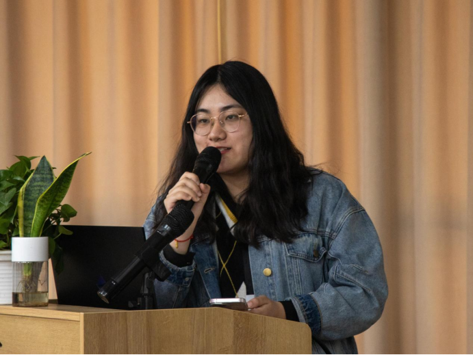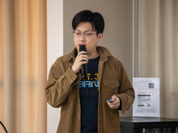 致真书院社区管理中心聂佳威向同学们介绍了社区文化节的趣味运动会、宿舍吉尼斯、迎春大扫除等活动,并希望同学们踊跃参加。
