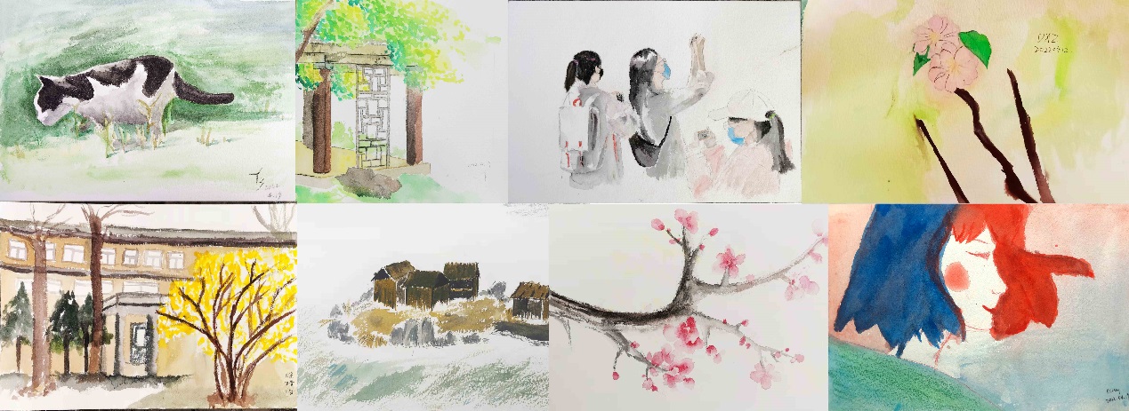 以美育人、以美化人、以美培元是提升学生文化底蕴、激发思维活力的重要途径。而身处于互联网时代,手绘、手作等动手能力变得越发弥足珍贵。段宣朱同学在课后表示:“不同于学习数理化时理性的分析和思考,速写和手绘春日校园风景让我有机会去感性地观察和描绘眼中的风景,用画笔抒发自己对于或细节的或宏大的美的感受。”课程提升了同学们的审美感受力与创造力,让同学们感受到了中华优秀传统文化的魅力。