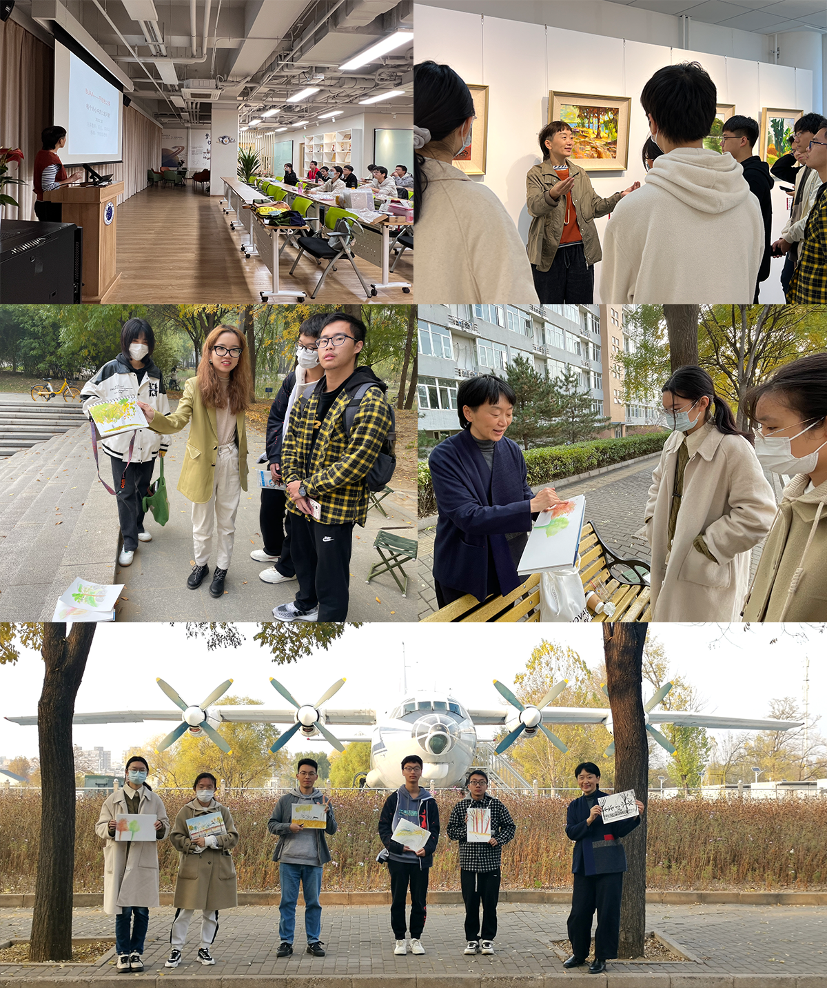副教授庄维嘉主讲,包含室内理论和室外实践两部分,带领同学们理解美、欣赏美、创作美。理论环节讲述了绘画的构图要素与色彩搭配,结合书院提供的水彩、彩铅等绘画工具讲解其特性和使用方法。实践环节组织学生参观“执着与美”作品展,带领学生踏访沙河校区,绘制心中最美的风景。指导教师对每一位同学的手绘画作进行了点评。